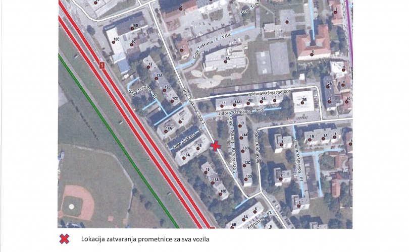 Za potrebe izvođenja prekopa nužno je zatvaranje navedenih prometnica za sav promet sukladno elaboratu privremene regulacije prometa.